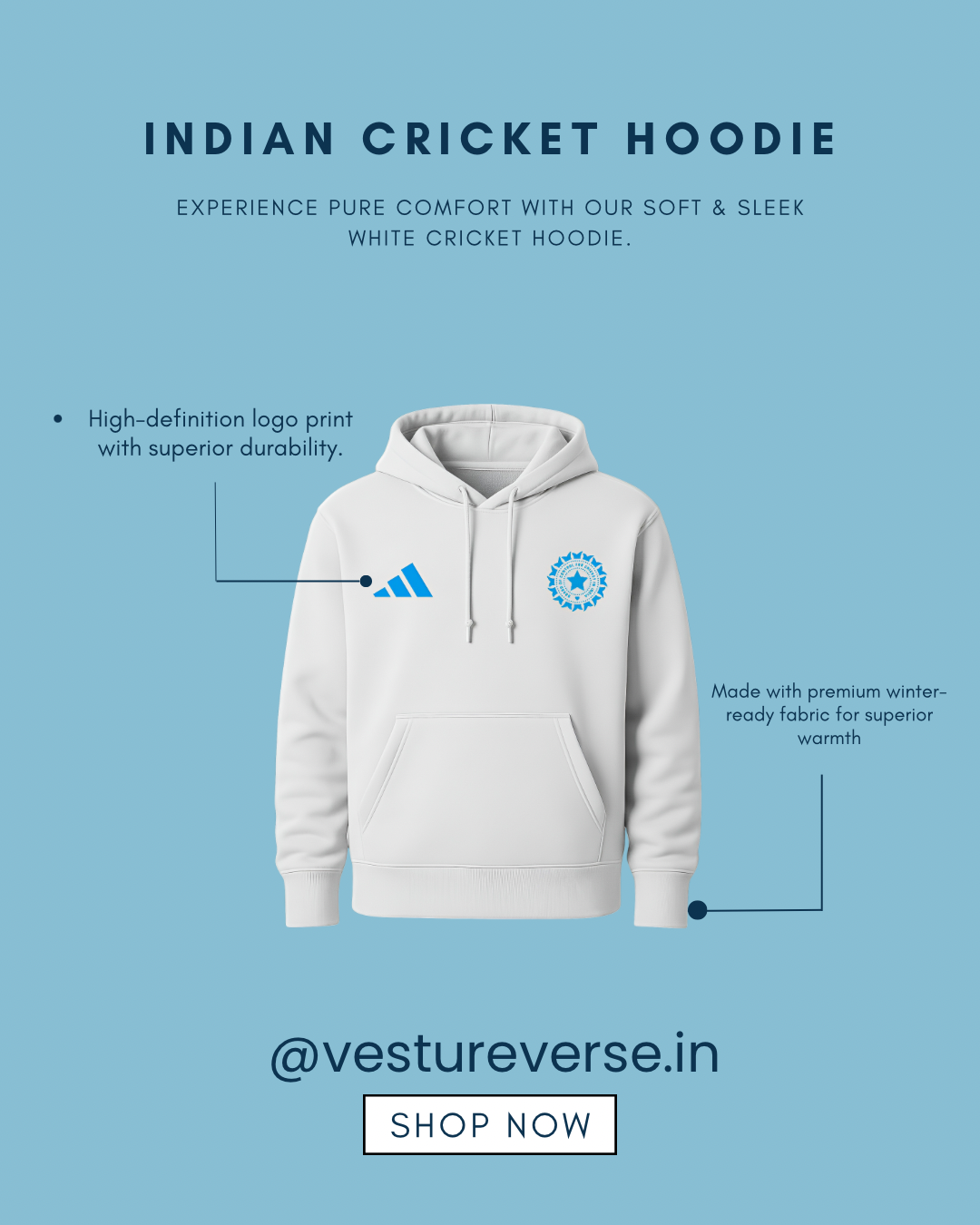 Rep your game in this premium Adidas × BCCI hoodie, featuring a sleek blue logo that stands out with every fit. Soft, comfy, and made for everyday flex.